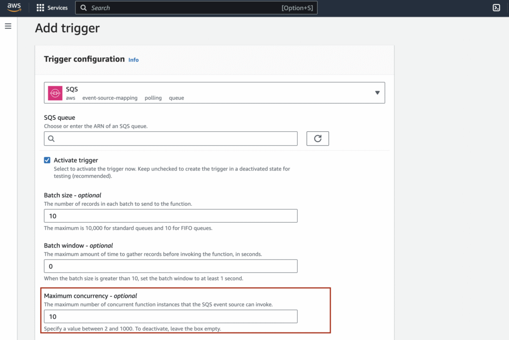 Max Concurrency for SQS event source